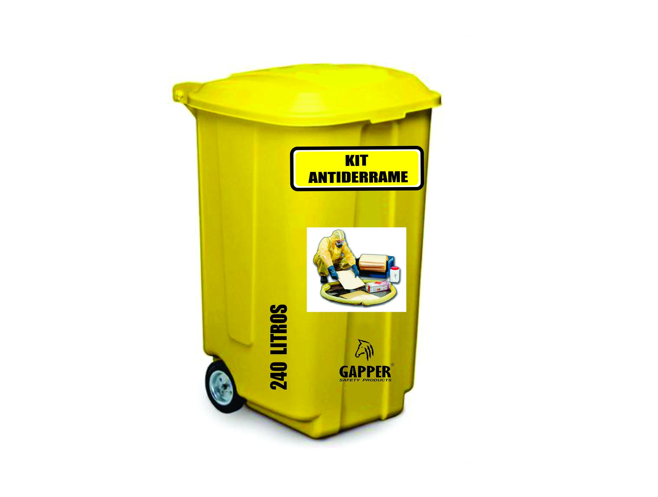 KIT ANTIDERRAME P/HIDROCARB Cap. 240 Litros (CONTEN- PLASTICO C/RUEDAS) - GAPPER